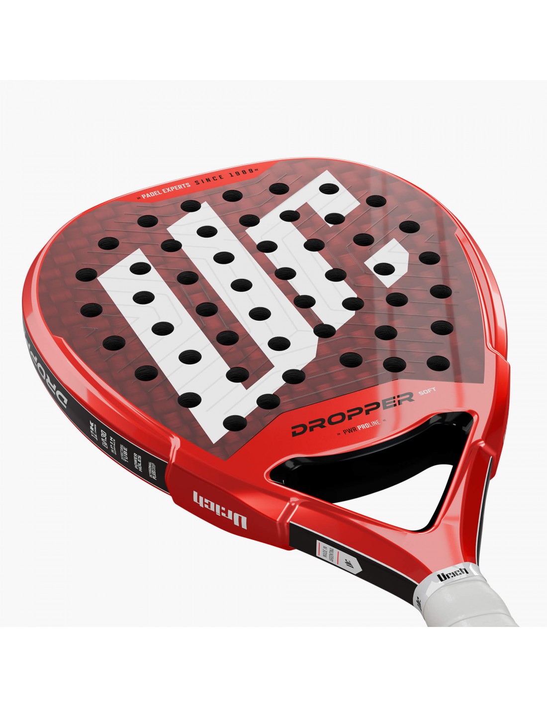 Su estructura incorpora un marco Double Structural Tube de 38 mm, que garantiza solidez y estabilidad, junto a caras de fibra de carbono 12K, responsables de un contacto firme y una excelente respuesta en golpes ofensivos. El núcleo de goma EVA 30 de dureza media aporta el equilibrio justo entre potencia, control y absorción del impacto.