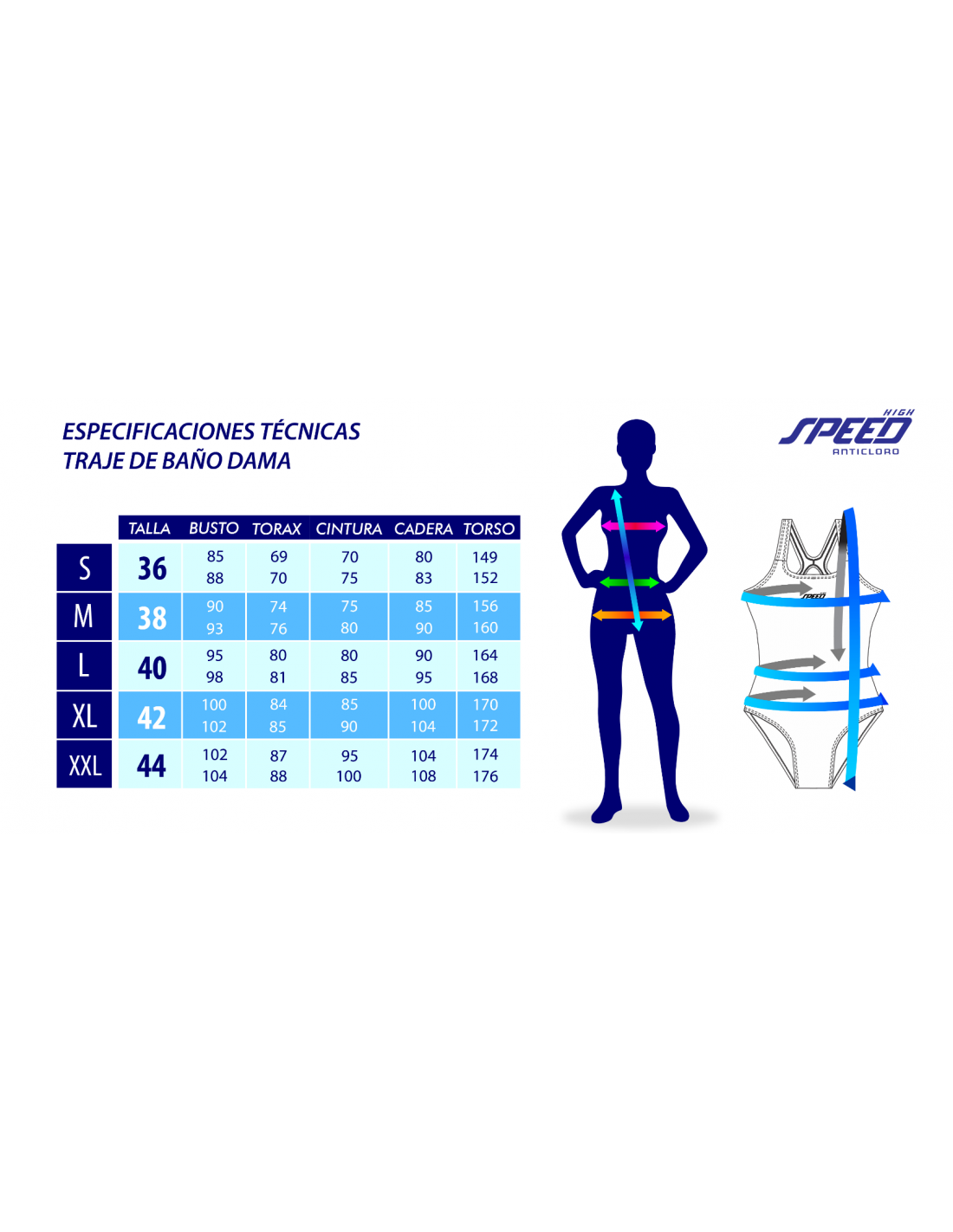 Todos los trajes de baño SPEED son fabricados con la tecnología ANTICLORO® asegurando el mejor rendimiento y  máxima durabilidad. A pesar de ser un desarrollo único y una marca registrada, la tela ANTICLORO® de las prendas SPEED pasó a ser una forma genérica para referirse a un traje de baño de buena calidad para su uso en piletas de natación.