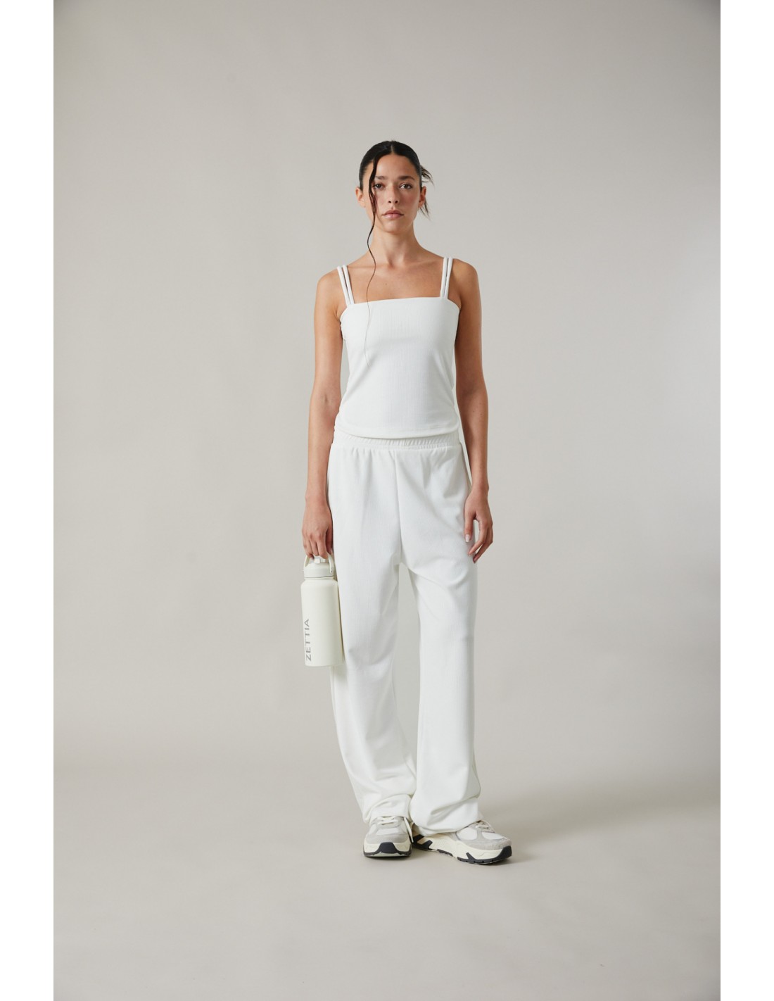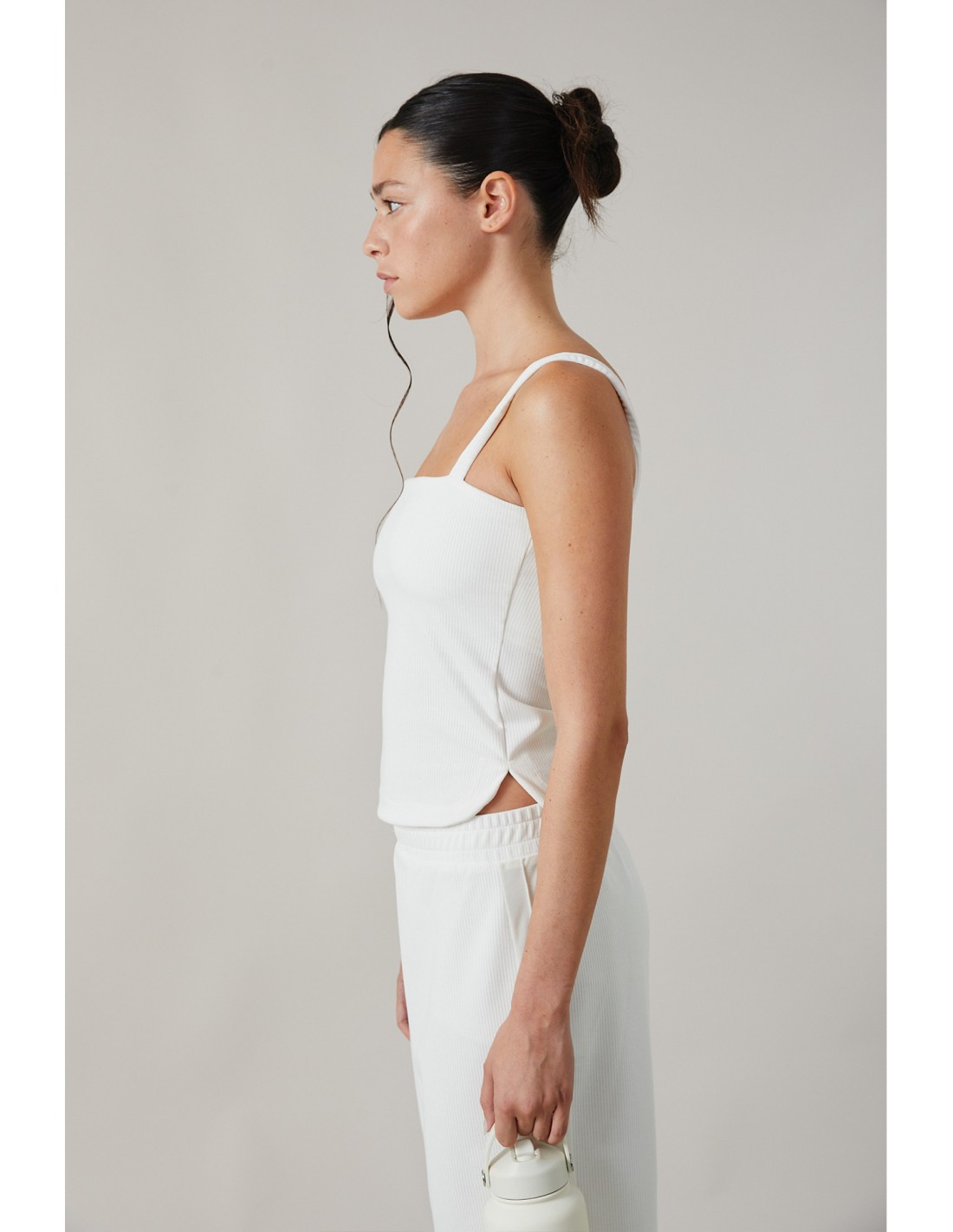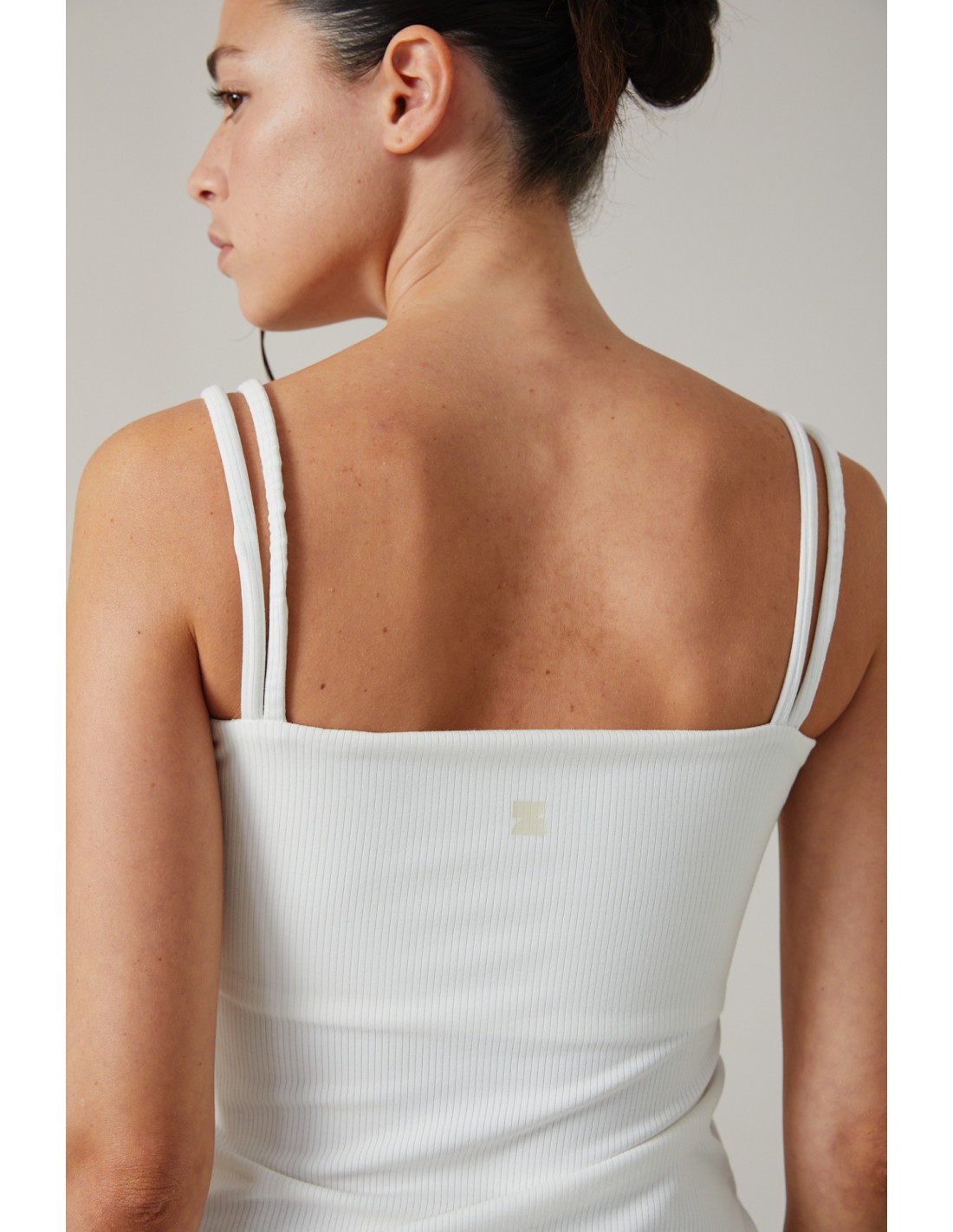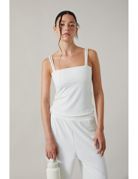 Musculosa al cuerpo de doble bretel, ajustada al cuerpo. Cuenta con con recorte con elástico para contención de busto. Realizada en Morley muy suave y liviano.